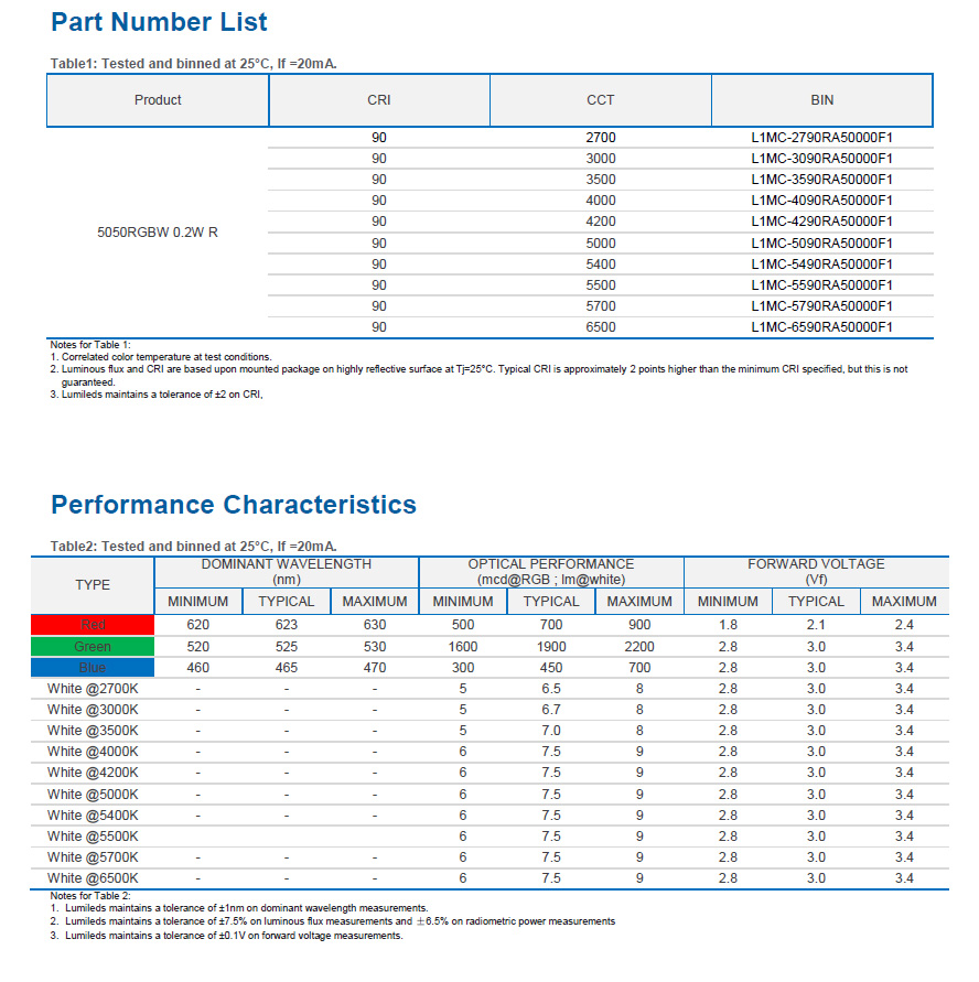 LUMILEDS 5050RGBW 四合一led燈珠0.2W RA90