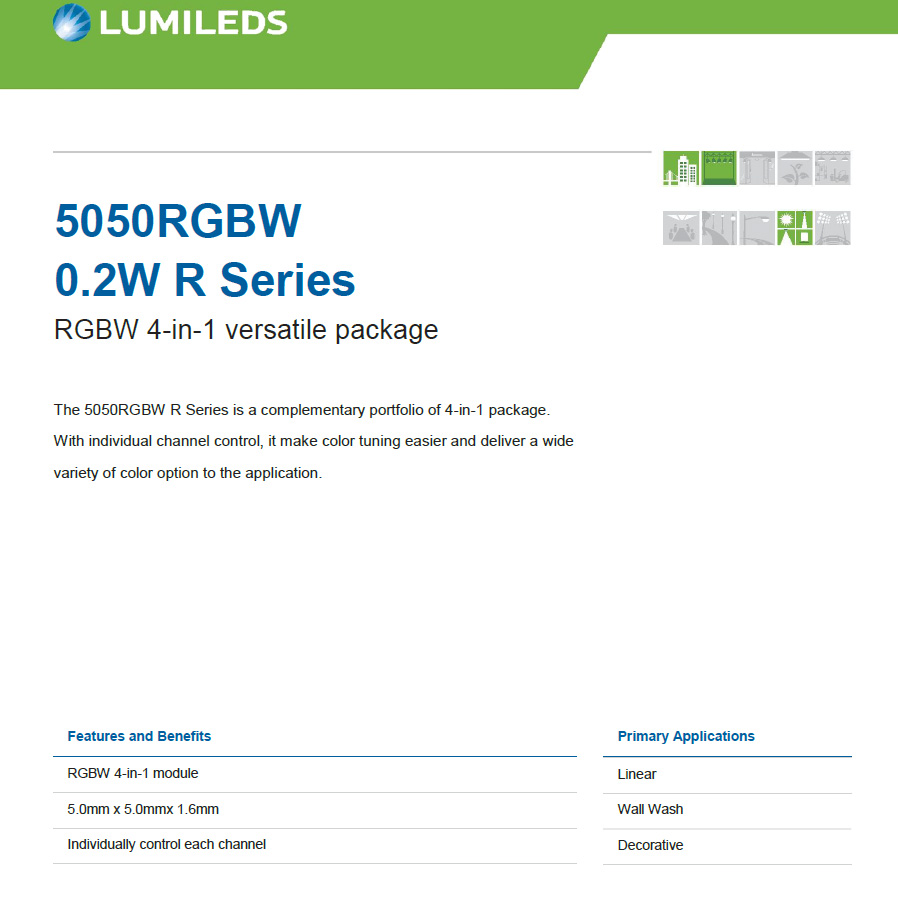 LUMILEDS?5050RGBW?四合一led燈珠0.2W RA90LUMILEDS 5050RGBW 四合一led燈珠2W RA80 LUMILEDS 5050RGBW 四合一led燈珠,功率分別有0.2W,0.5W, 2W的,主要應用于景觀亮化中的led洗墻燈,線條燈,點光源,投光燈等產品上,具有極好的穩定性,高壽命,高品質光色,是led景觀亮化燈具的首選!